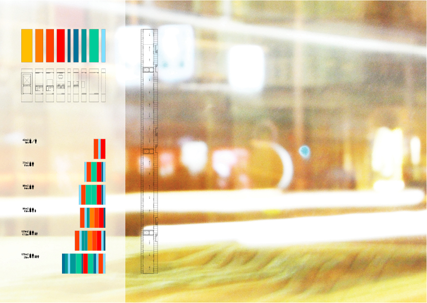facing the street. Even though it stands still, it mediates among the surrounding and the life inside. It blurs the boundary between the